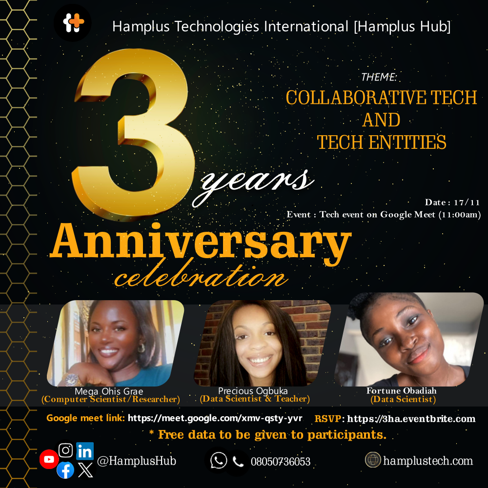 It is the anniversary of Hamplus Technologies International [Hamplus Hub], and in her culture, she celebrated this year’s anniversary (the third since launch in 2020) with the theme: Collaborative Tech and Tech Entities.